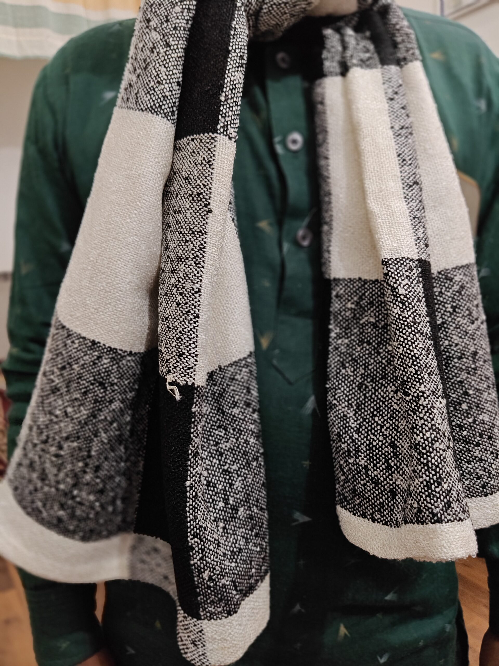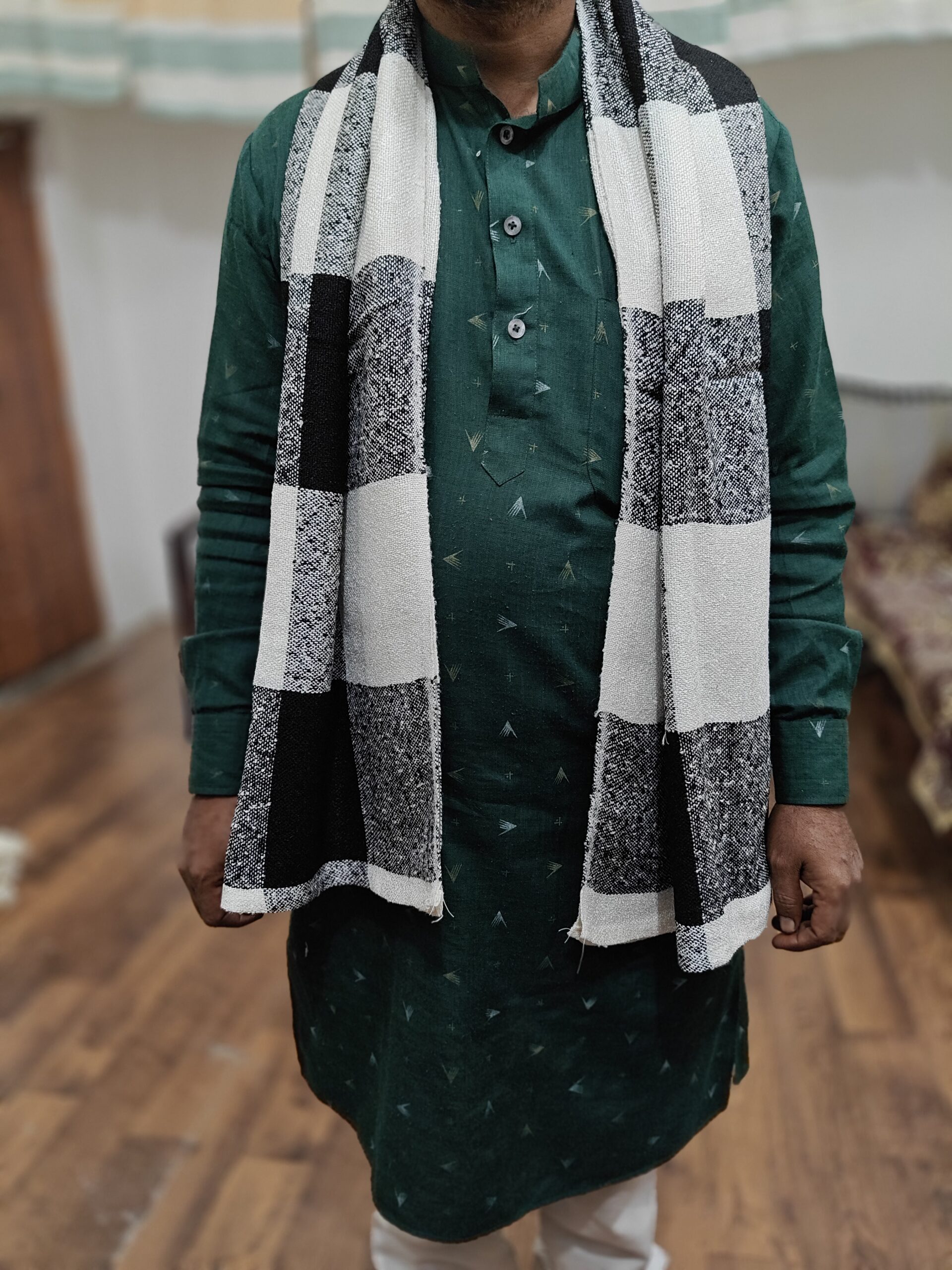 Upgrade your everyday style with this fancy black and white handmade scarf, crafted with a classic check pattern. Lightweight, soft, and versatile, it is perfect for daily wear, casual outings, and gifting.